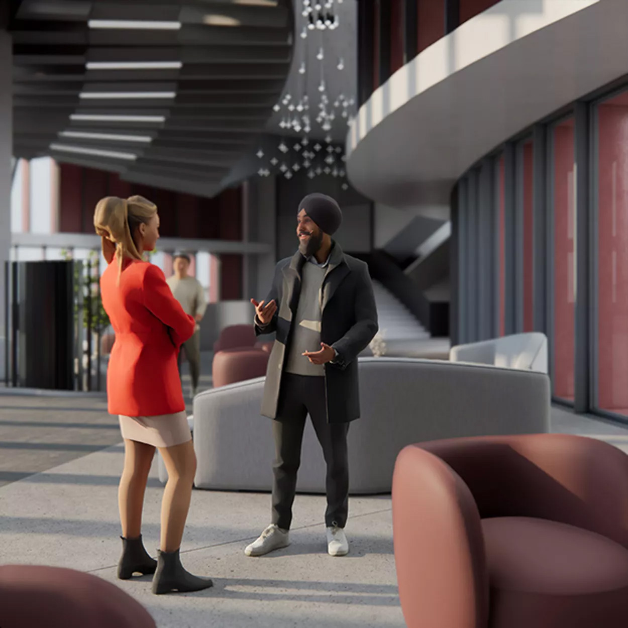 Many of Enscape’s people and vegetation assets are produced in-house, keeping a strict budget of polygons that allows users to place multiple assets without experiencing a loss in performance.